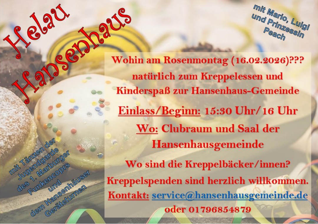 „Helau Hansenhaus“ hieß es am Rosenmontag, als wir unser Kreppelessen im Clubraum und Saal gefeiert haben.